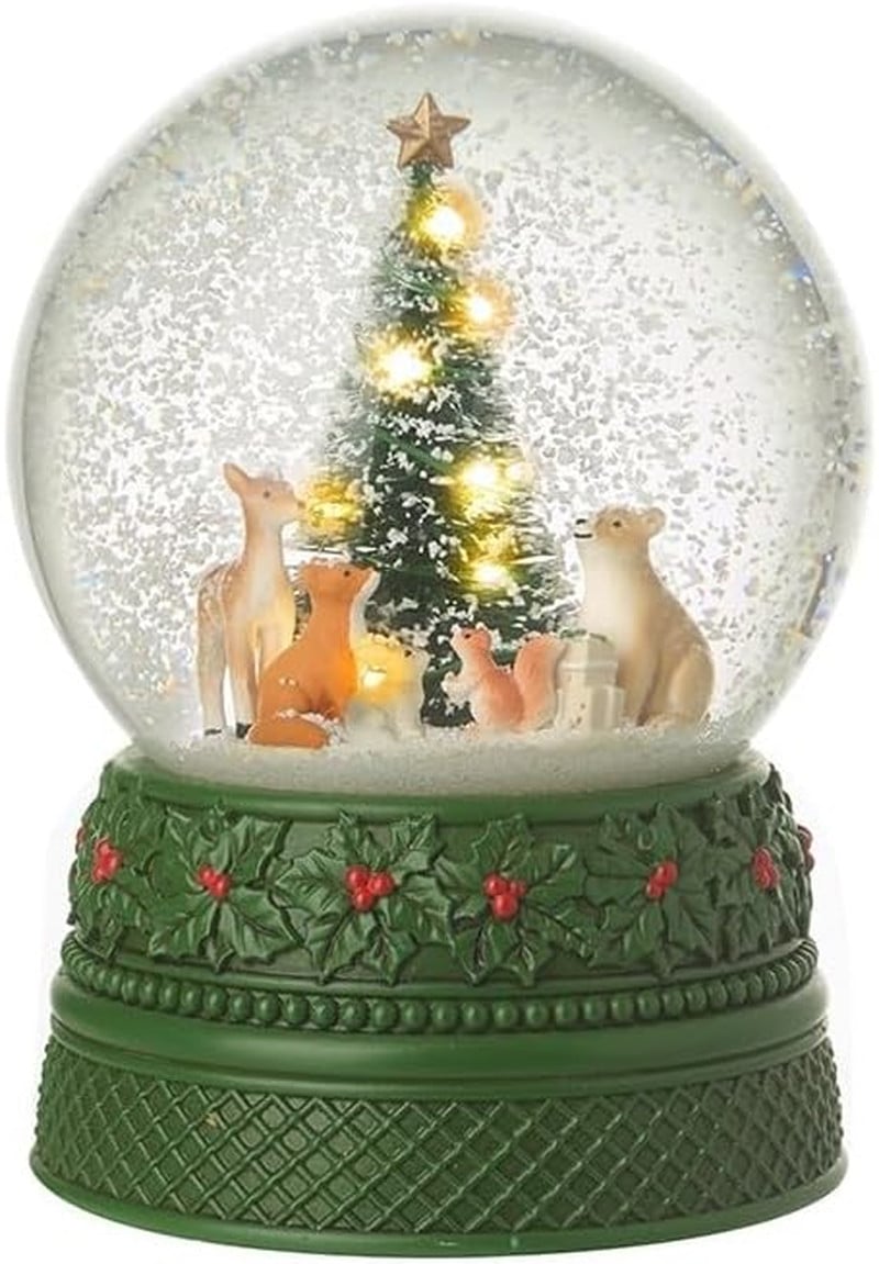 Heaven Sends Light Up Woodland Animals Around Tree Christmas Musical Snow Globe