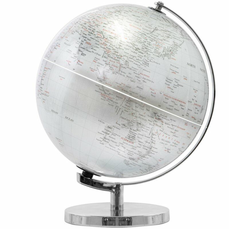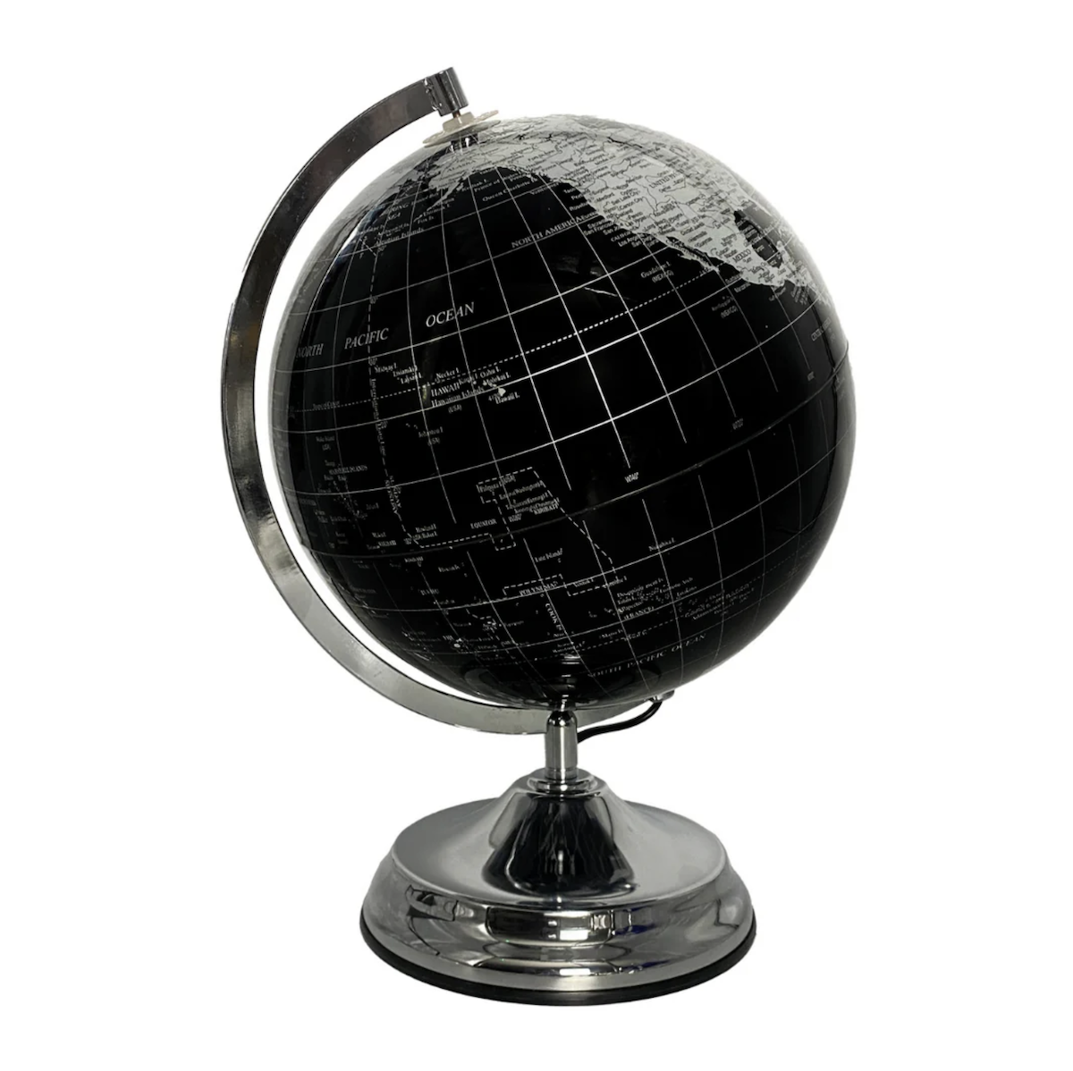 10" ( 25 cm ) LIGHT UP LAMP SILVER FINISH WORLD GLOBE ATLAS MAP