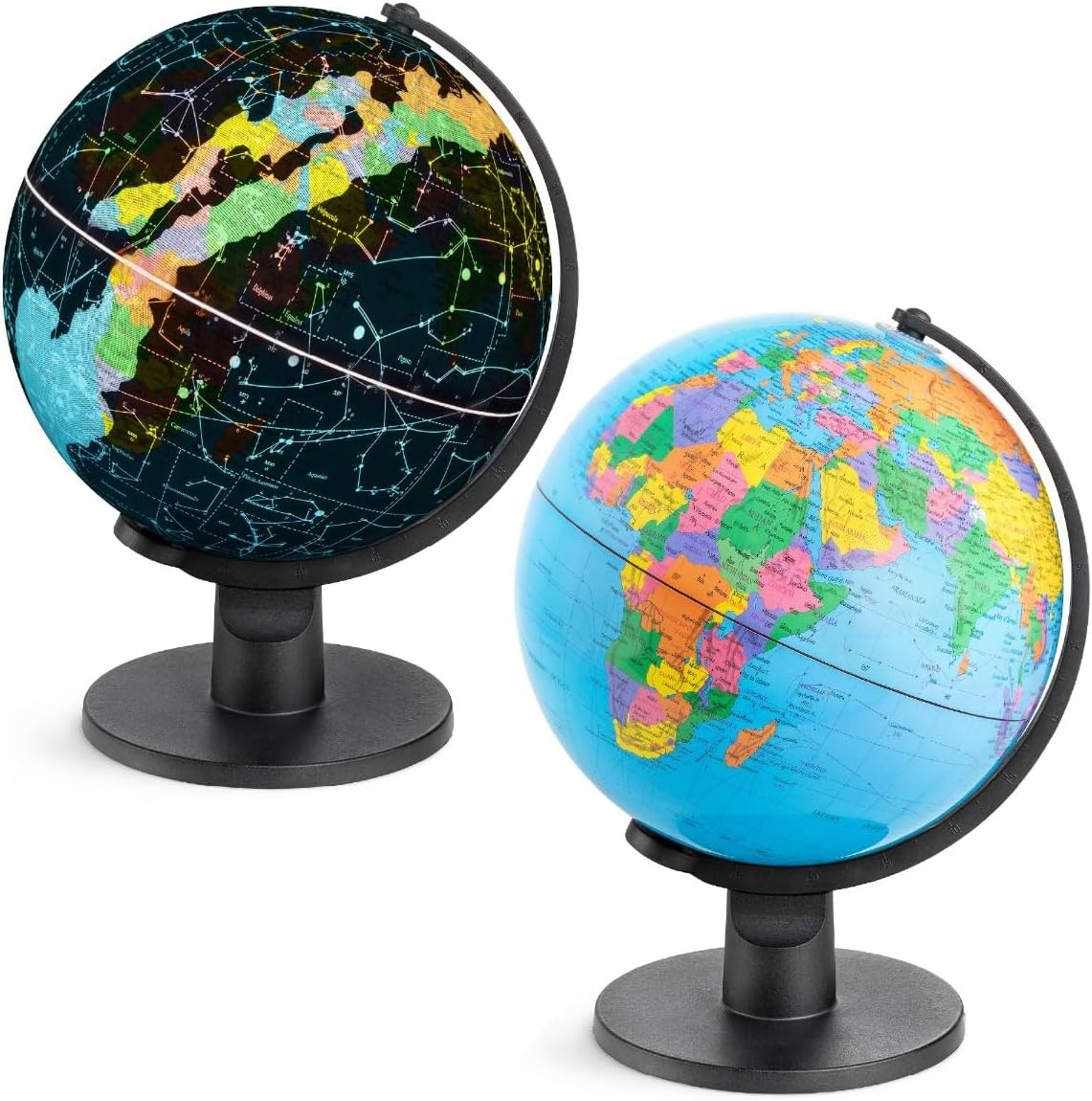 Toyrific 2 in 1 Kids Light Up Globe, Two Views, Globe Lamp with 8 LED Lights, 2