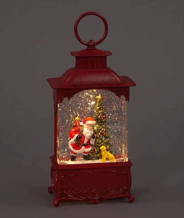 Santa and Dog Christmas Water Lantern Light Up Snow Globe Decoration - 24cm