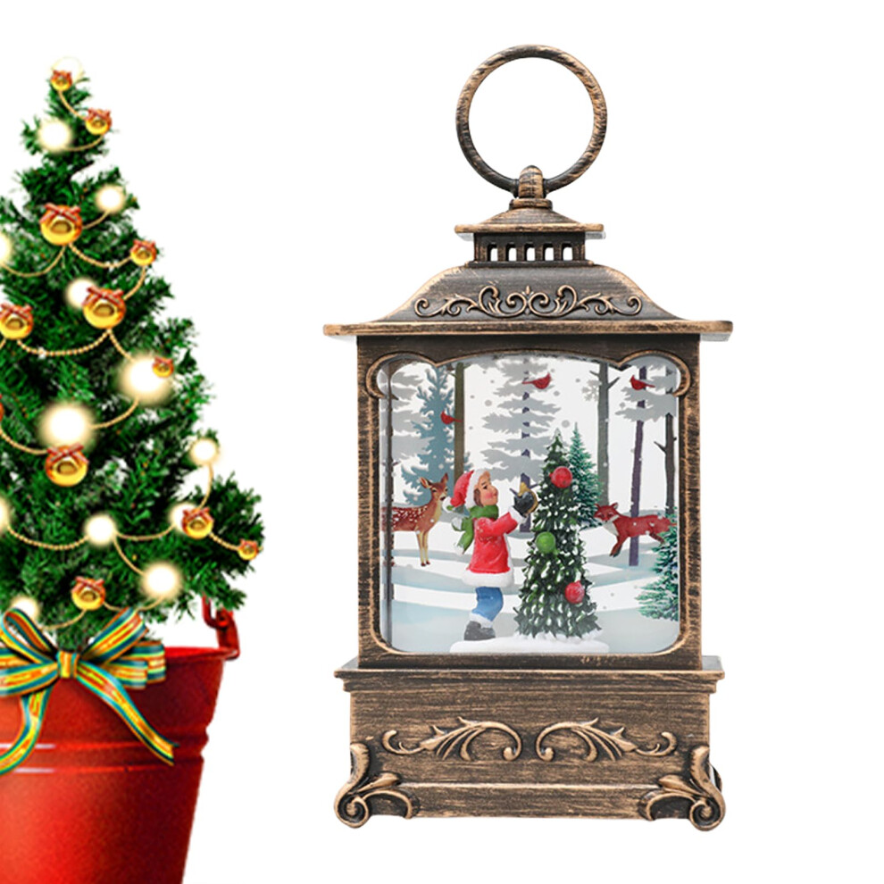 (F) Christmas Snow Lantern Christmas Scene Lighted Snow Globes Swirling LED Snow Globe Christmas Light Up Snow Globe Lantern