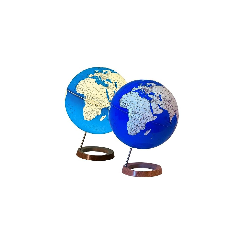 Illuminated World Globe 33cm diameter Wooden Base - XL Large -2 in 1 Light up Globe - Self Assembled - Sapphire
