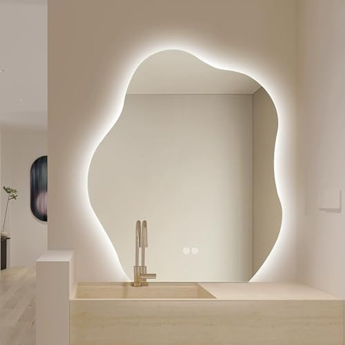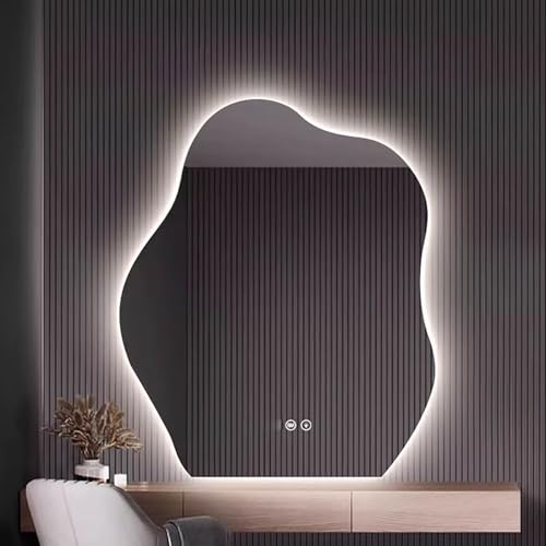 Xxbbyubo 100cm Irregular Light Up Mirror for Entryways, Asymmetrical Backlit Vanity Mirror with 3-Color Dimmable, 90cm Frameless Home Decor, Anti-Fog with Touch Switch(75 * 100cm)