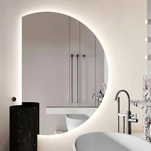 Dijateman Large Light Up Bathroom Mirror with Backlight, Half Moon Vanity Mirror for Wall, Antis-Fog, Dimmable, 3 Colors Intelligent Decorative(Cut right,90cm)