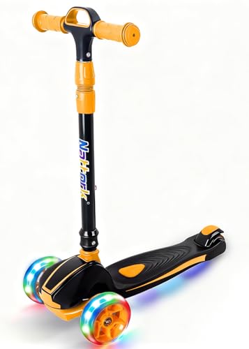 Nattork Light-Up 3-Wheels Scooter for Kids & Toddlers Ages 3-12 with 4 Adjustable Height for Boys & Girls,220LB Weight Capacity for Children3-5, 5-8, 6-12 Yellow
