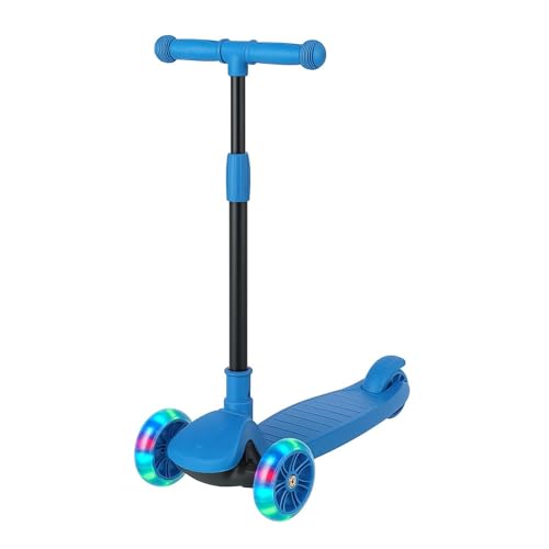ADEPTNA 3-Wheel Light Up Scooter for Kids Adjustable Height Durable Steel Frame LED Flashing Wheels Non-Slip Deck Rear Brake Pedal Foldable Design Ages 2+ Perfect Balance Confidence Building (BLUE)
