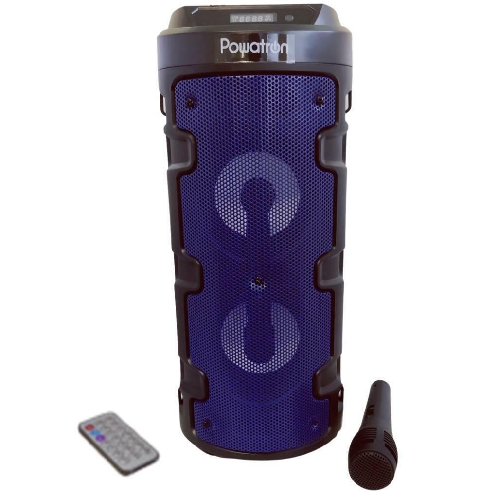 Powatron Portable Light-Up Bluetooth Speaker Remote & Microphone Carry Strap NEW