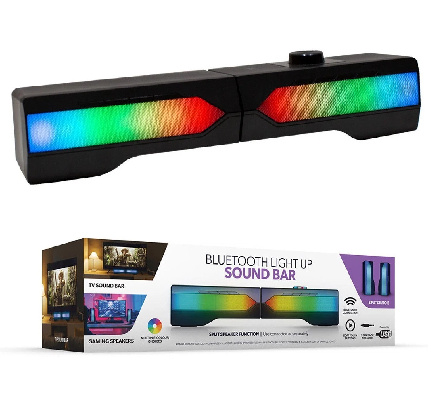 Bluetooth Light up Sound Bar Detachable RGB LED USB Colour Changing Speaker