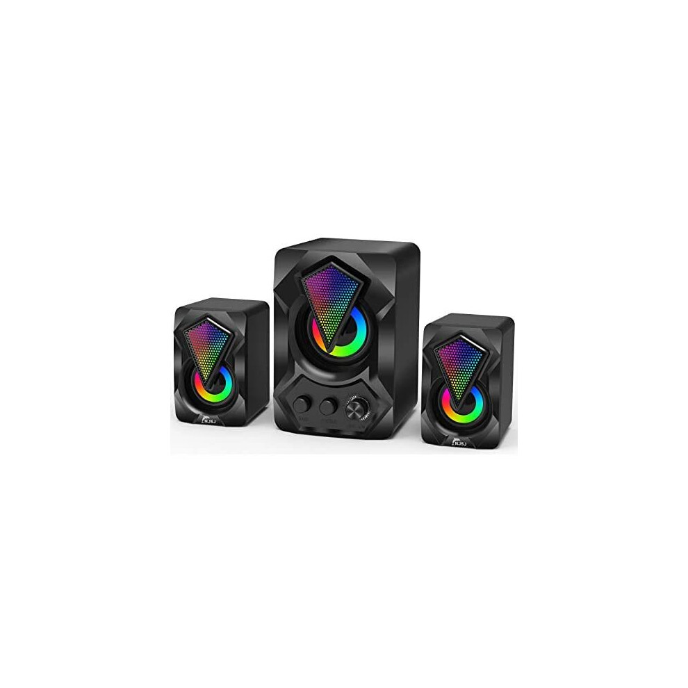 NJSJ Computer Speakers with Subwoofer,USB-Powered 2.1 PC Stereo Multimedia Sound System with RGB Gaming LED Light up 3.5mm Audio,Up to 11W Enhanc