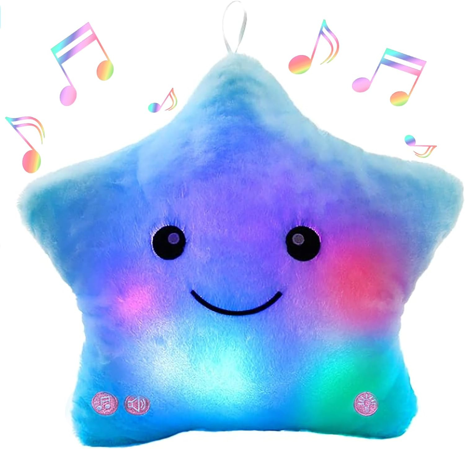 NYOBABE Sensory Toys for Autism,Musical Light Up Star Sensory Lights,Soft Plush Pillow,Kids Sleep Aid Adhd Autism Toys,Birthday Xmas Gifts for Toddler Boys Girls Age 3 4 5 6 7 8 9 10 Blue