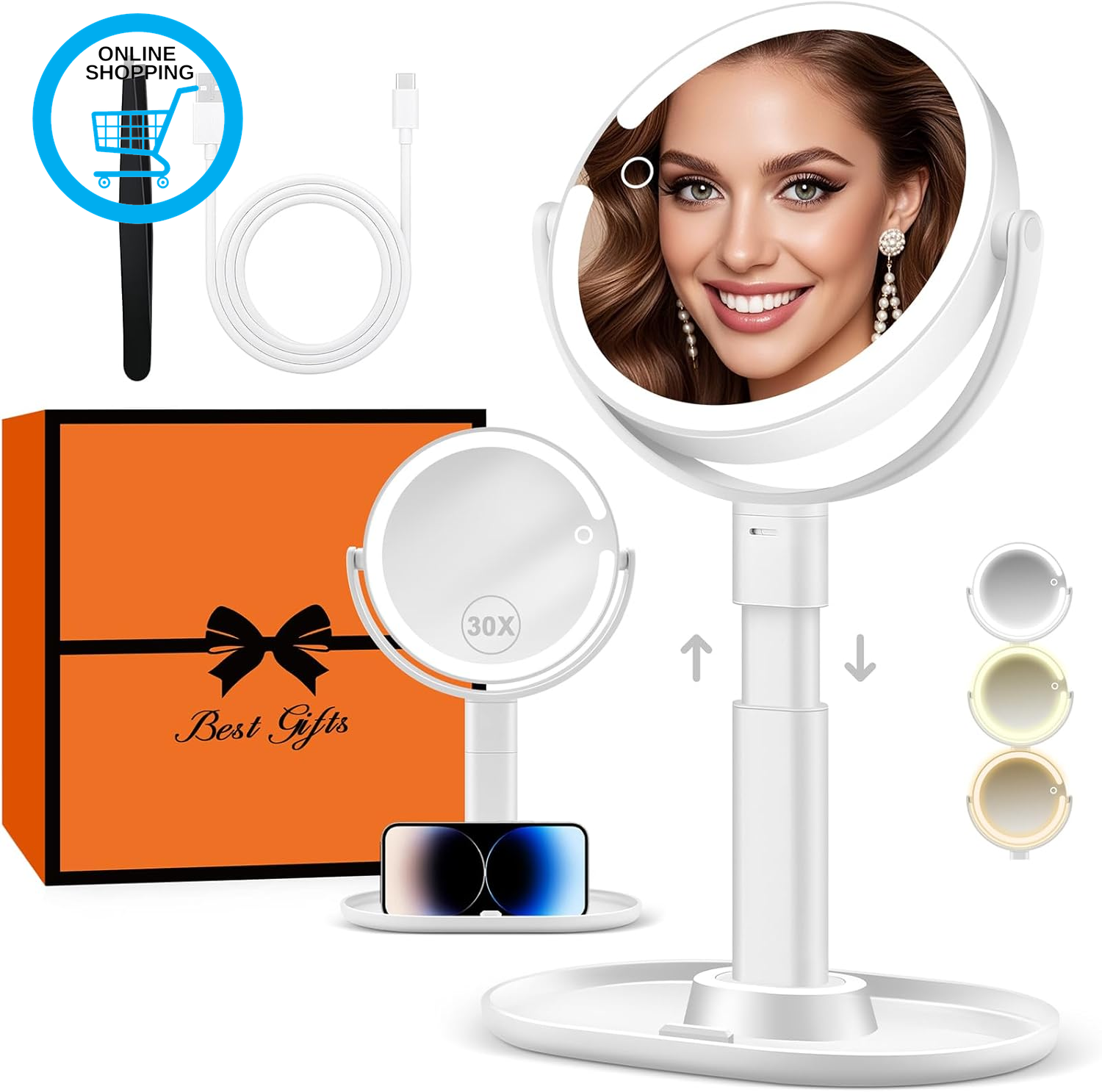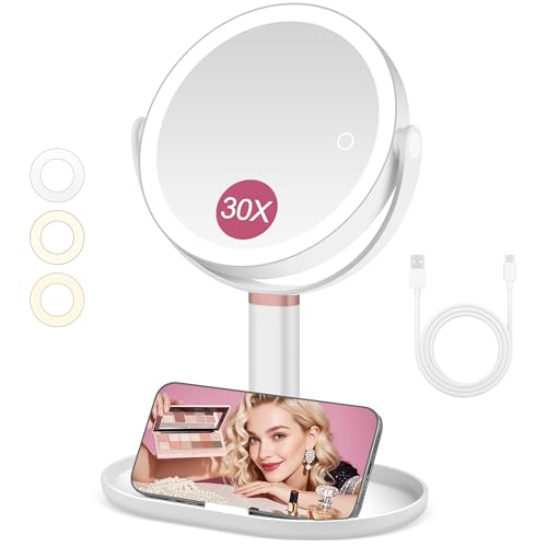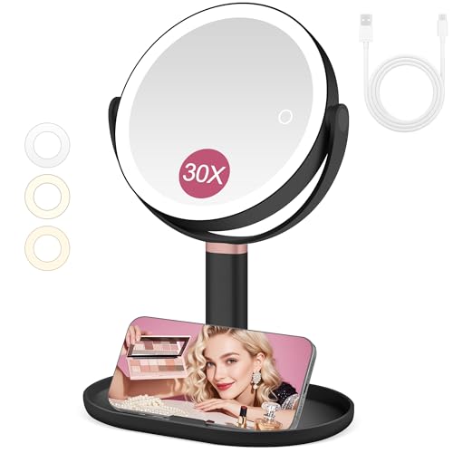 Makeup Mirror with Lights, Lighted Magnifying Mirror 30X with 3 Lighting and Adj