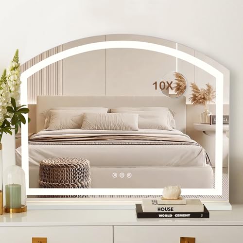 TRIOBLADE Vanity Mirror with Lights LED Lighted Up Makeup Mirrors with Dimmable 3 Modes and Brightness Adjustment Touch Screen Control 10X Magnifying Glass for Bedroom Dressing Room (70x55cm)