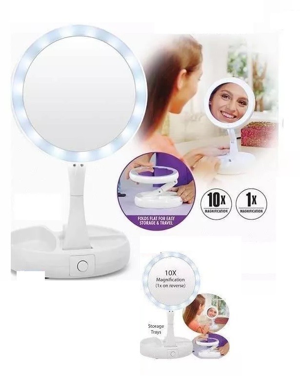 LED Lighted Folding Round Travel Foldable Makeup 10 X Magnifying Desktop Mirror