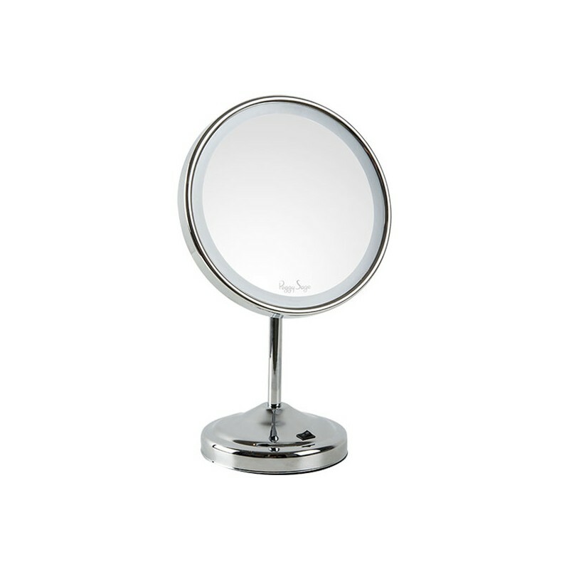 PEGGY SAGE LED Lighted Mirror Magnifying 5x Free-Standing Round Silver 20 cm New