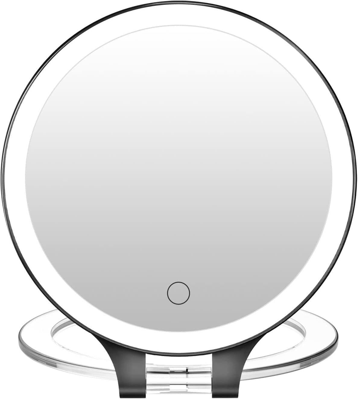 Mocado Travel Makeup Mirror with Light 1x/10x Magnifying Mirror with Light 3 Colors Lighted Magnifying Mirror 2000mAh Rechargeable Lighted Mak