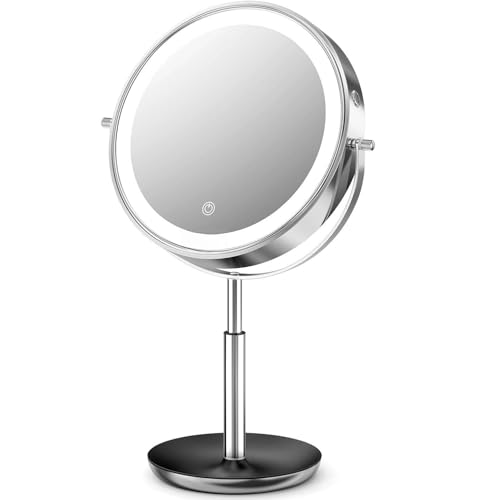 Benbilry LED Lighted Makeup Mirror - 7 Inch 1x/10x Magnifying Touch Control, Double Sided Magnified Vanity Mirror With Stand, Battery Operated, Chrome