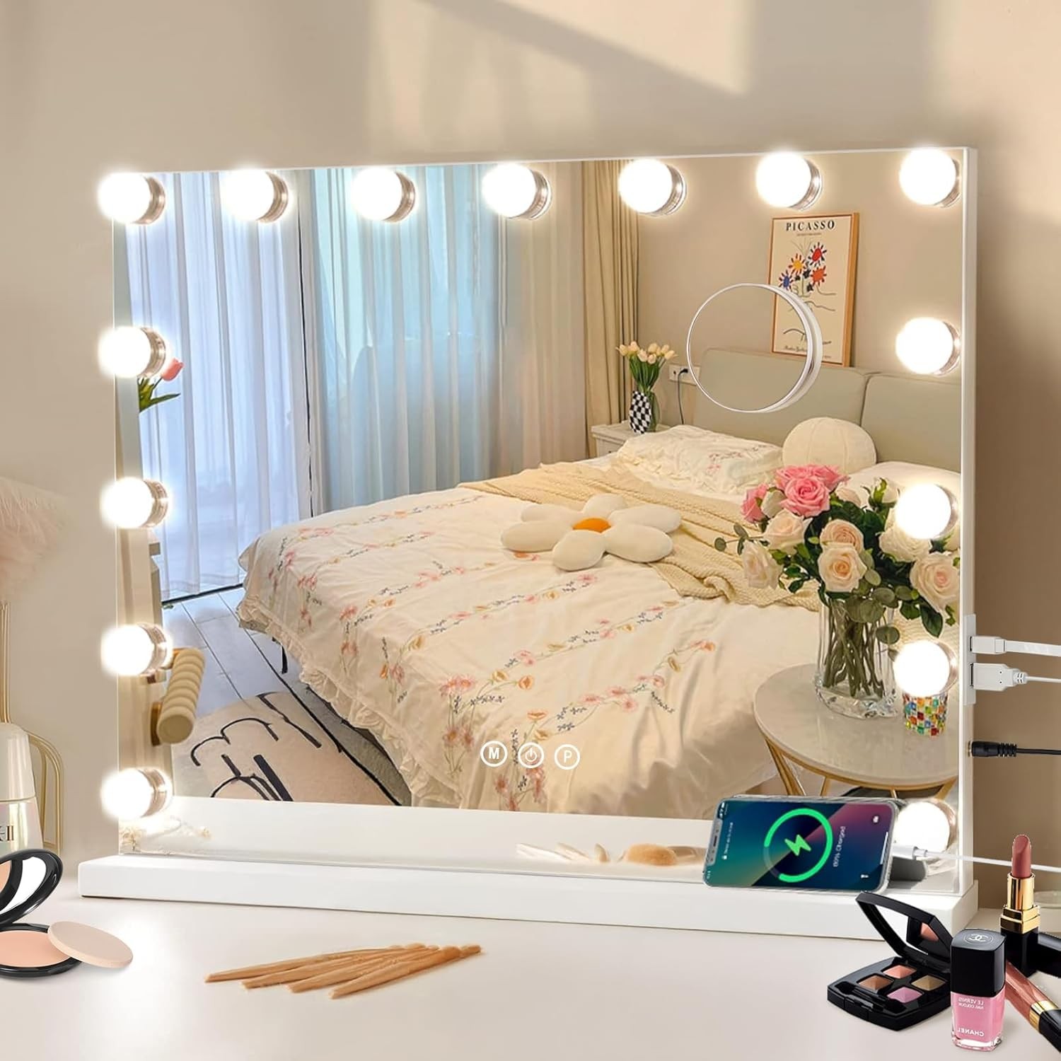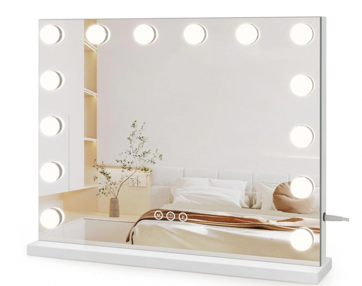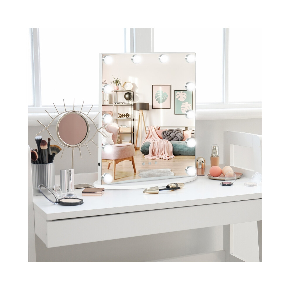 Lighted Vanity Mirror with Hollywood Style Lights 12 Dimmable LEDs & USB Plug Makeup Dressing Table Mirror White