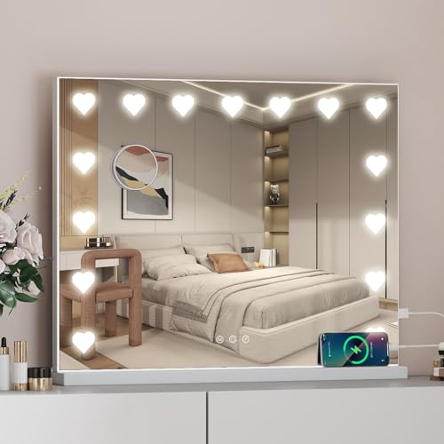 YOURLITE Hollywood Vanity Mirror with Lights, 58×45cm Lighted Makeup Mirror with 15 LED Light, 3 Lighting Modes, Heart-Shaped Design, Touch Screen Control, USB Type C, Tabletop & Wall Mounted