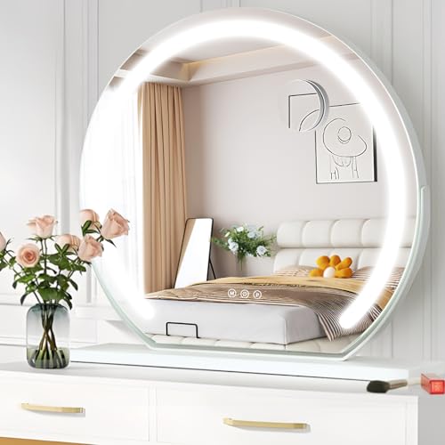 BSTSEL Hollywood Vanity Mirror with Adjustable LED Lights, 60cm Large Round Lighted Tabletop Makeup Mirror with USB Output Port, Smart Touch Screen Control for Dressing Table Bedroom (60cm diameters)