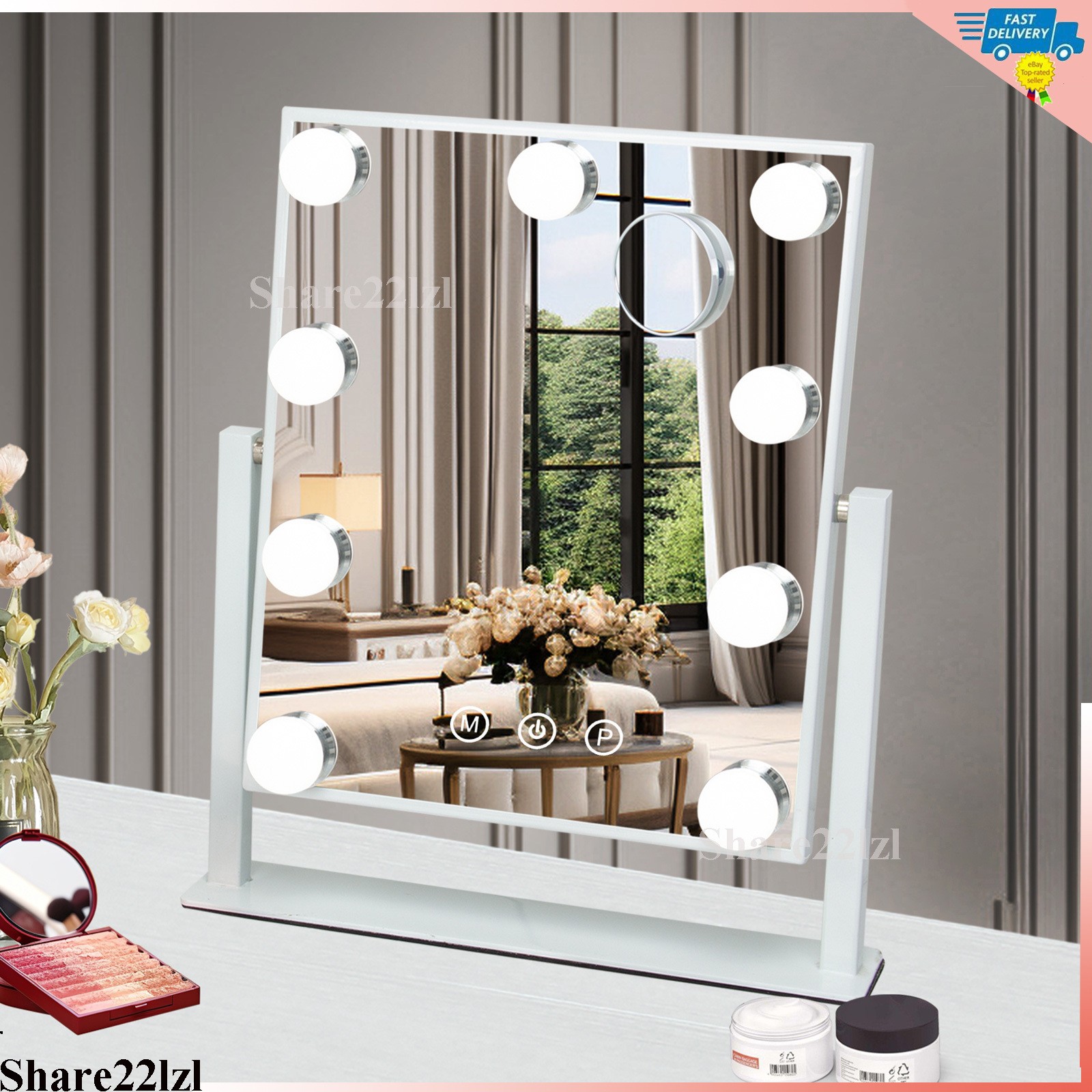 FENCHILIN Hollywood Makeup Mirror with Lights Tabletop Makeup Mirror with 9 LED Bulbs Lighted Hollywood Vanity Mirror 360 Rotation 10X Magnifier, Smart Touch Control