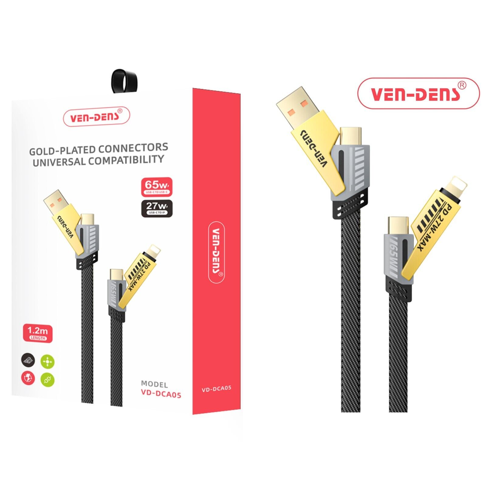 VenDens 4in1 PD65W Fast Charge Gold-Plated Cable | 2 USB-C + USB-A + Lightening