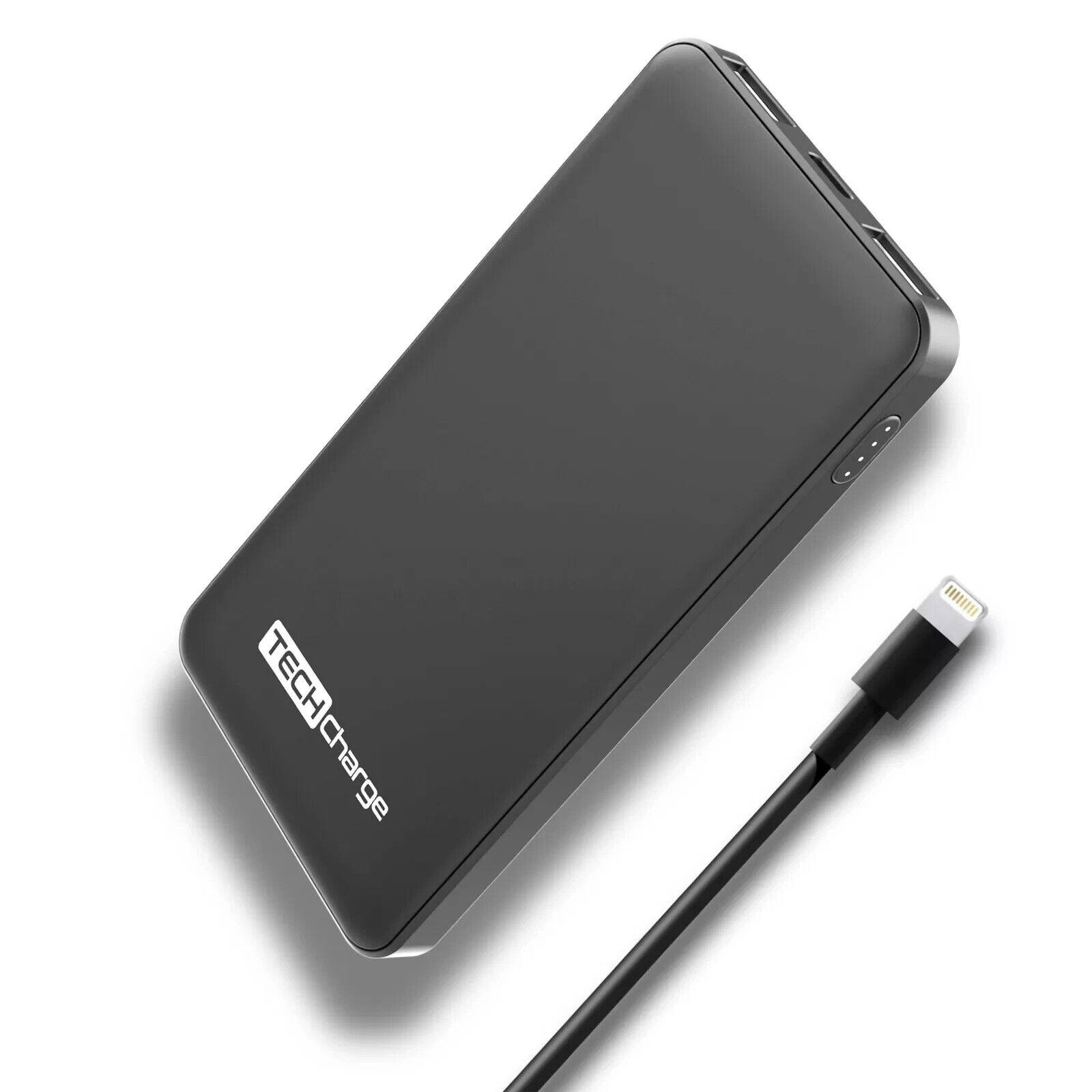 Tech Charge Power Bank Dual Port Output & Lightening Cable Fast Portable Charger