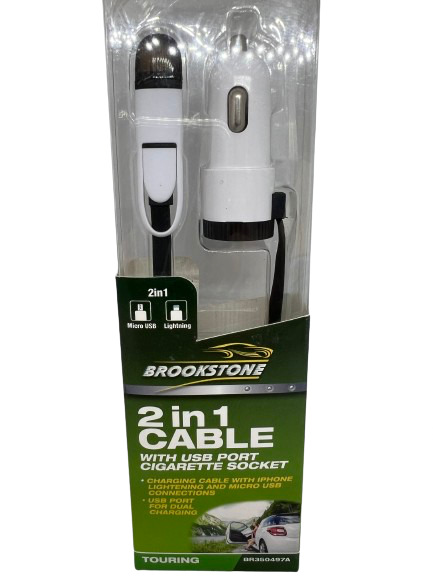brookstone 2in1 cable with usb port cigarette socket micro usb iphone lightening