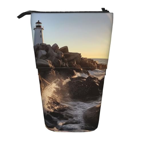 Stand Pencil Case Lighthouse Rocks Seaside Telescopic Pencil Bag Multifunctional Standing Pencils Pouch Portablem Makeup Bag for Organizer Stationary Students School Office