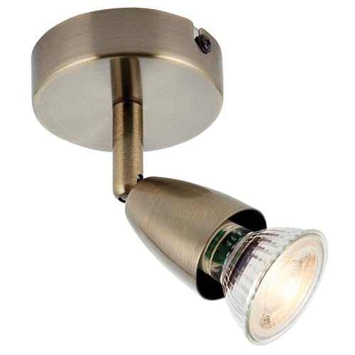 National Lighting Amalfi Single Decorative Antique Brass Finish GU10 LED Compatible Adjustable Ceiling Wall Spotlight