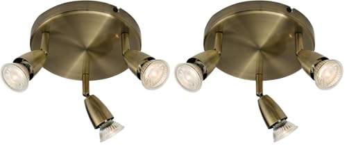 National Lighting Amalfi 3 Way Decorative Antique Brass GU10 LED Compatible Round Adjustable Ceiling Spotlight (Pack of 2)