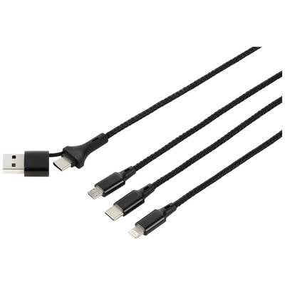 USB charging cable USB 2.0 USB-A plug, USB-C® plug, USB Micro-B plug, Apple Lightning plug, USB-C® plug 2.00 m Black Aluminium connector US203/2M