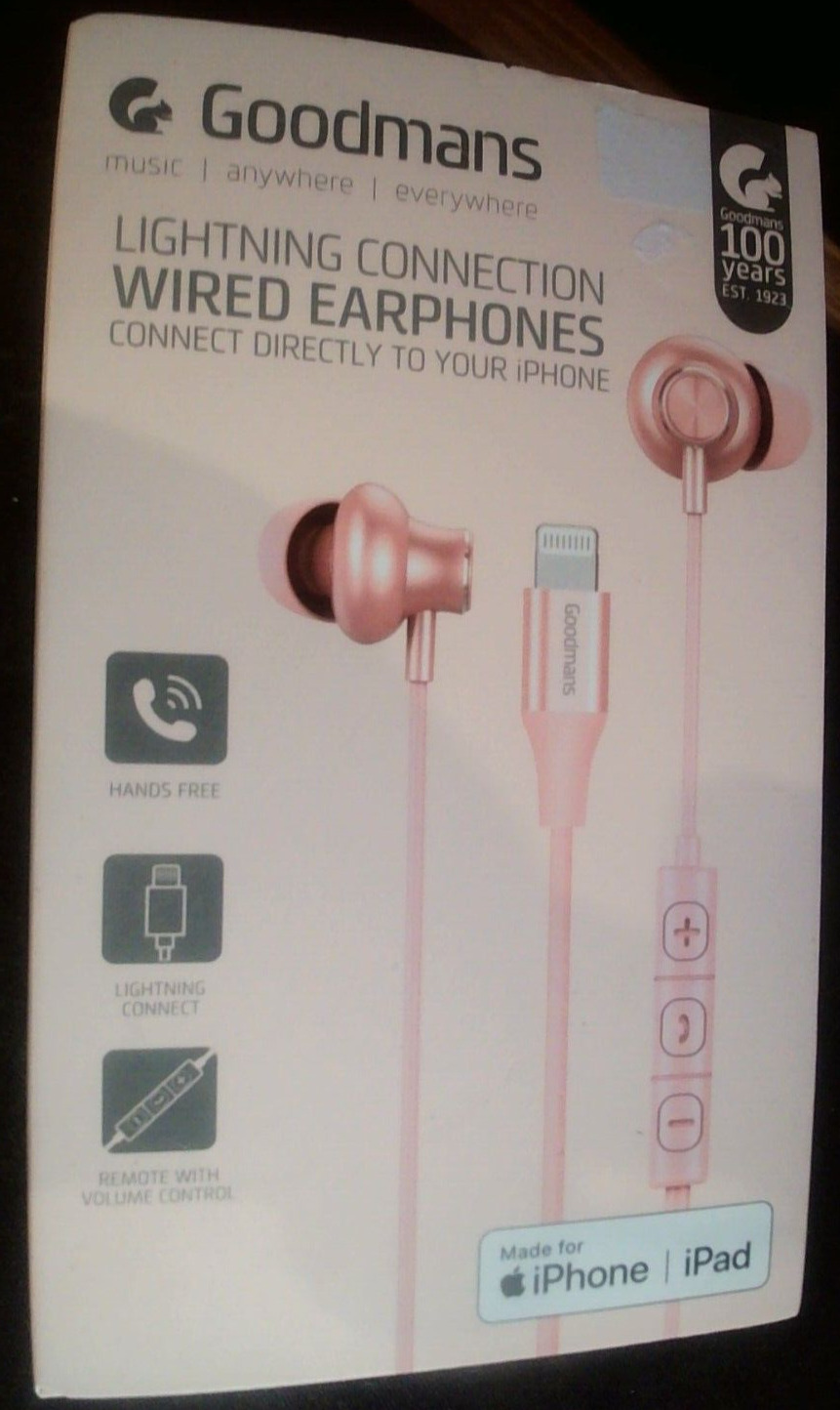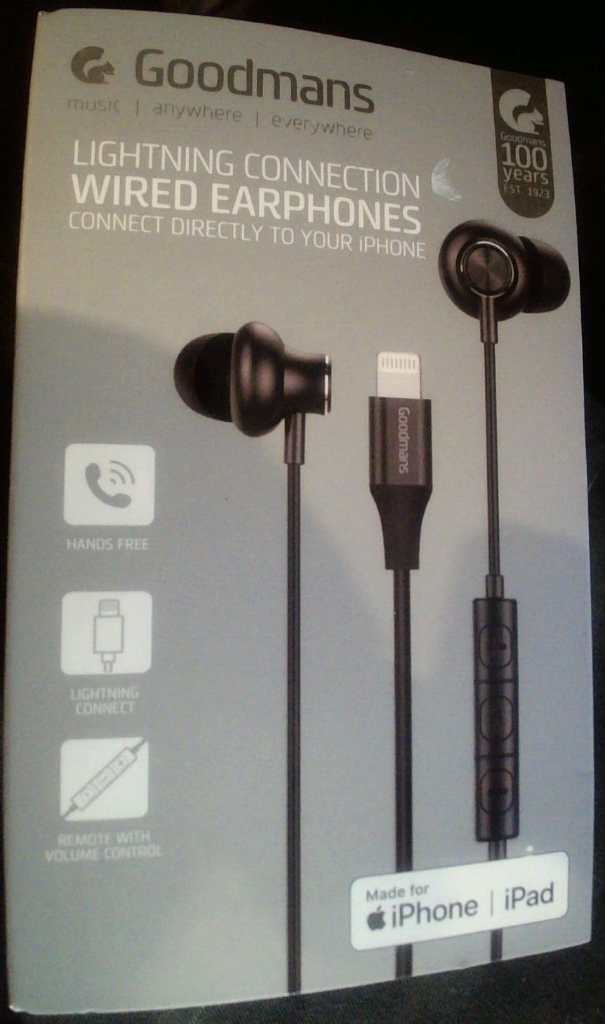 Goodmans Wired Earphones Lightning Connection (iPad/iPhone).Built-In Mic. Black