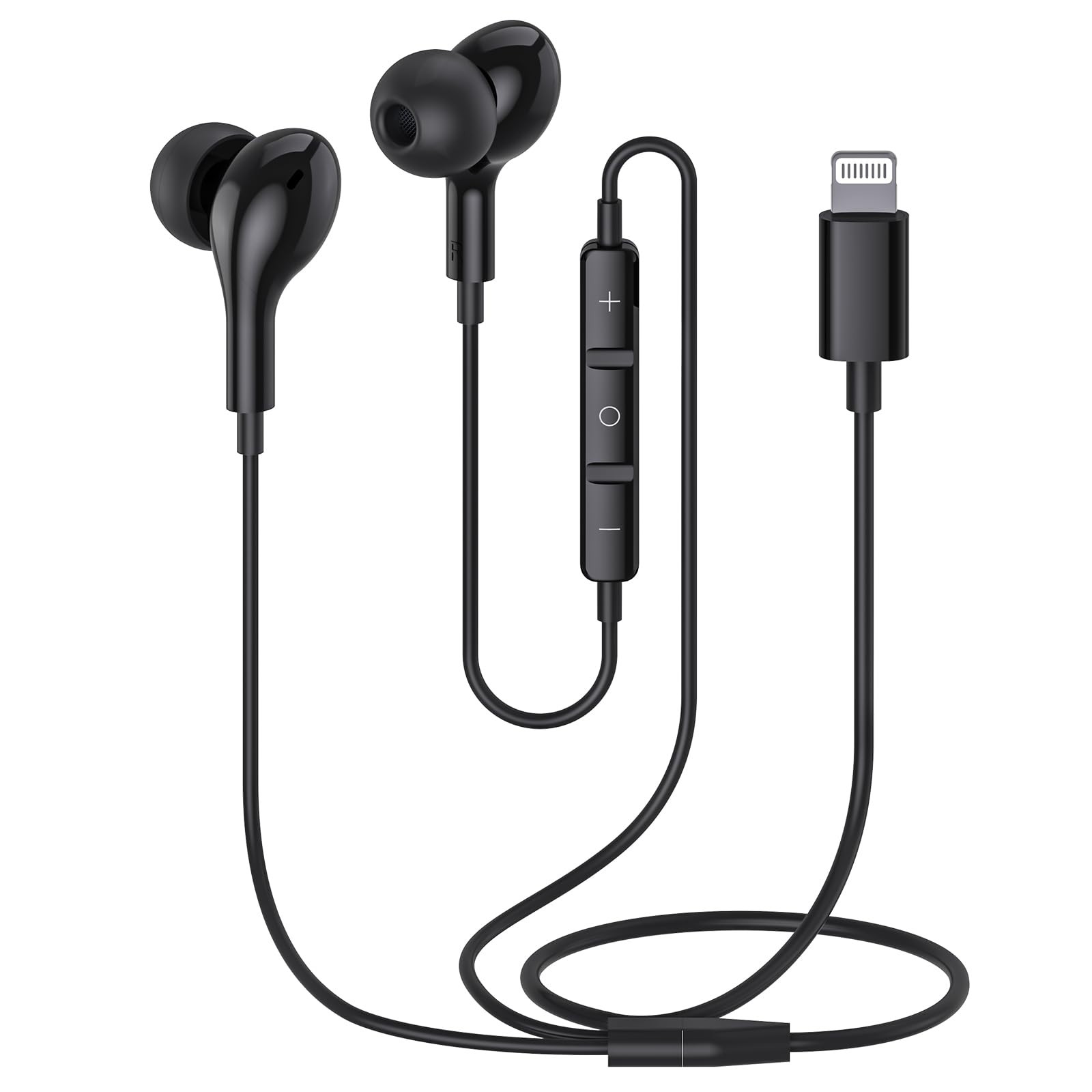 Ergonomic Design In-Ear Earphones, Bass Stereo Sound MFi Certified Lightning Headphones with Microphone and Volume Control for Hands-Free Calling,