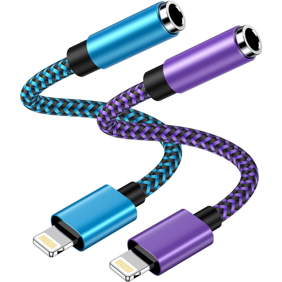 Lightning to Audio Jack & Charger Extender Splitter Compatible with iPhone 11/12 Mini/Pro Max/XR/XS/X/SE2/7/8 Plus, iPad Air â Blue
