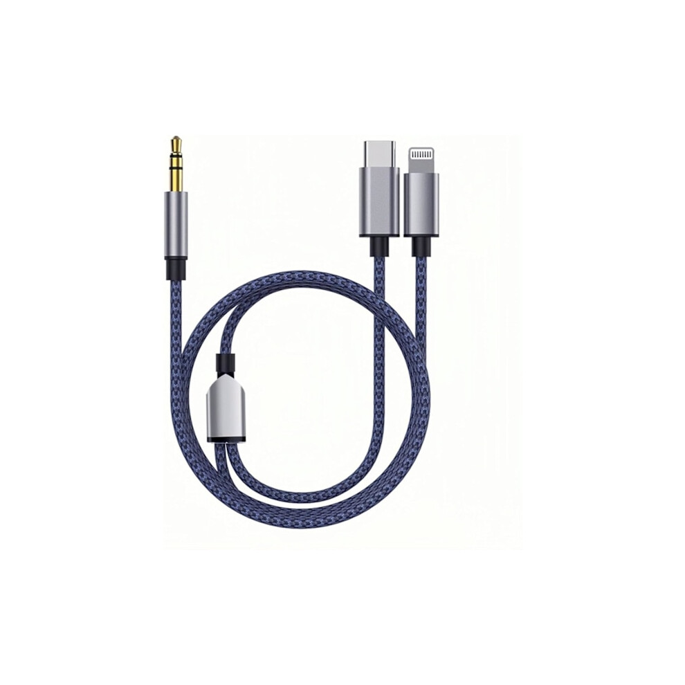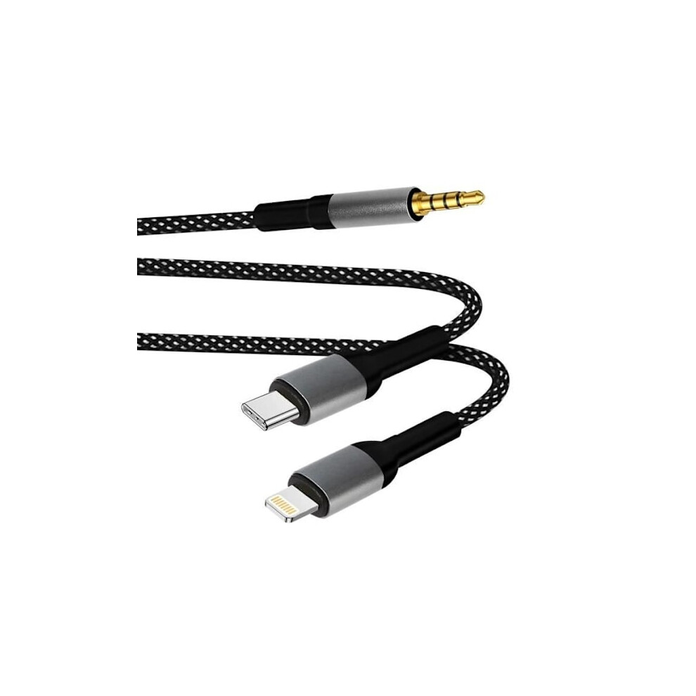 ##/Braided Nylon USB C & Lightning to 3.5mm Jack Audio Adapter Aux Cable##/