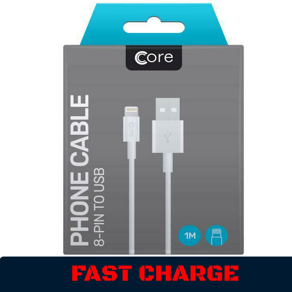 White iPhone Charger Lightning Cable Lead 1M
