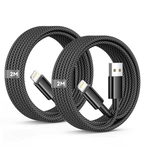 iPhone Charger Cable 2M 2Pack, [Apple MFi Certified] iPhone Cable Fast Charging Nylon Braided USB to Lightning Cable Lead, iphone Lead wire for Apple iphone 14 13 12 11 Pro Max X 8 7 6 Plus,iPad iPods