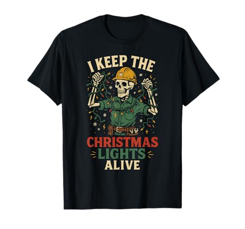Electrician Skeleton Shirt Christmas Lights Alive Humor T-Shirt