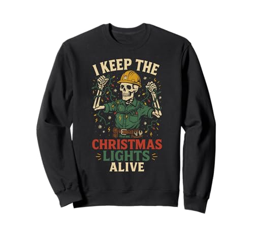 Electrician Skeleton Shirt Christmas Lights Alive Humor Sweatshirt