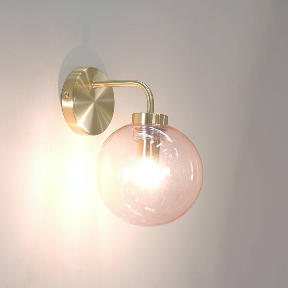 ValueLights Frenchie Pair of Pink Tinted Glass Globe Single Gold Stem Wall Lights and Bulbs