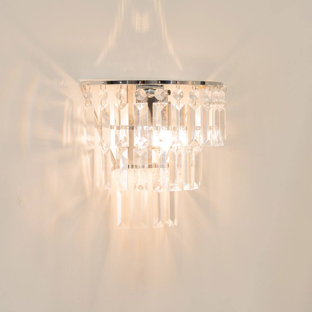 ValueLights Kelsks Pair Chrome with Drops Chandelier Flush Wall Lights and Bulbs in Silver