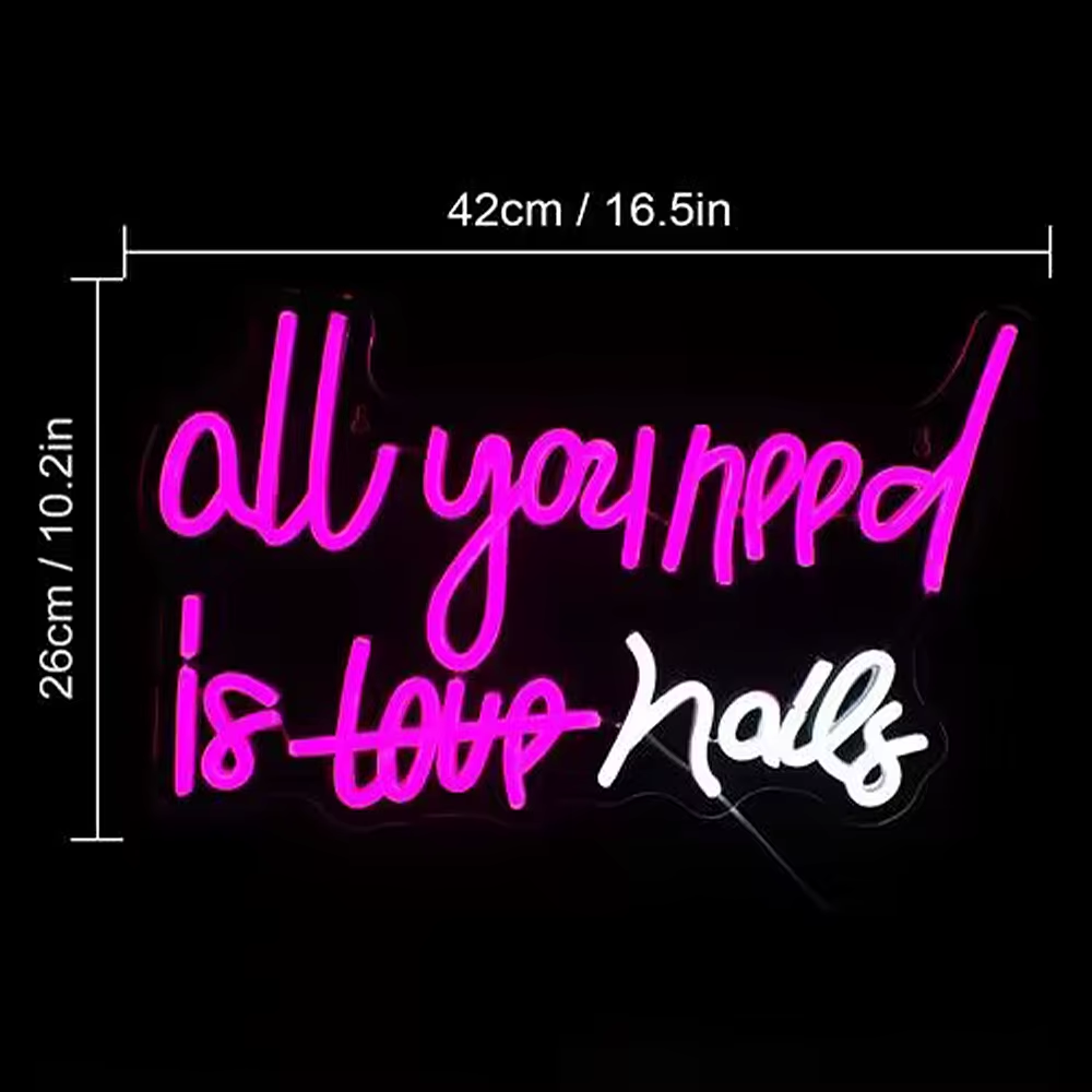 All You Need Is Nails Neon Sign for Wall Decor Pink Nails Letter Lights Salon Be