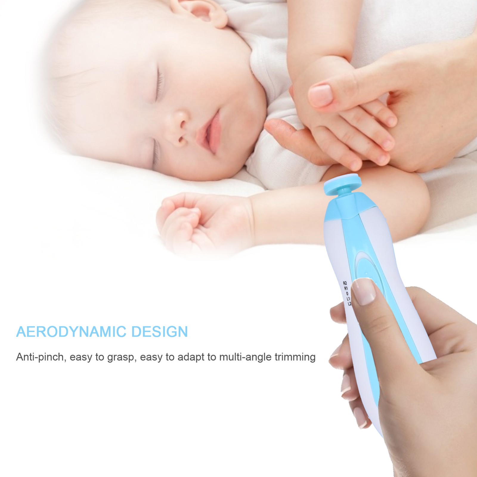 (Light Blue)Baby Nail File LED Lights Baby Nail Clipper For Baby For Trim Nails