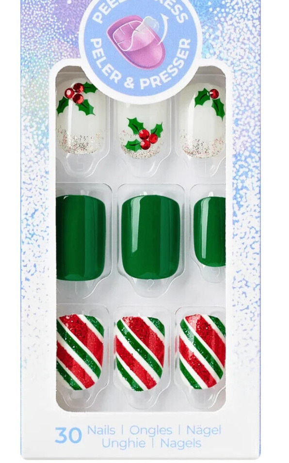 KISS IMPRESS PRESS ON FALSE NAILS CHRISTMAS FESTIVE LIGHTS XMAS SHORT LENGTH