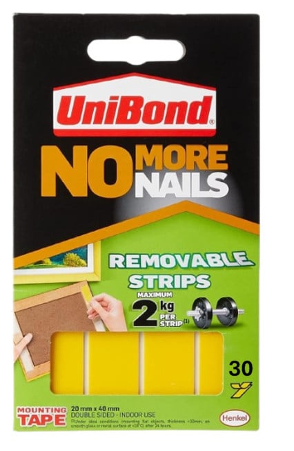 No More Nails REMOVABLE Strips x 30 Pack | 2kg Per Strip | Frames, Lights, Decor