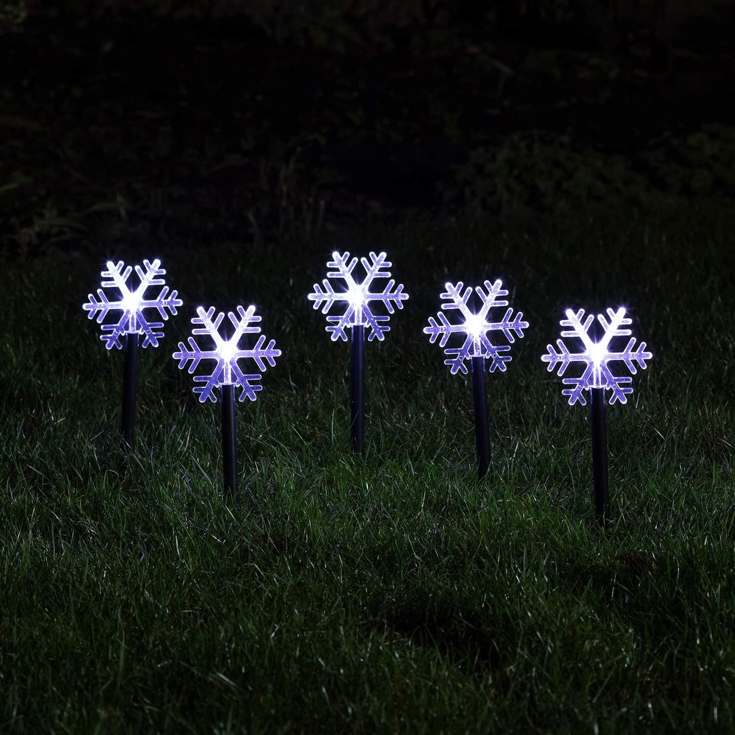 Set of 5 Christmas Snowflake Garden Stake Lights Battery Outdoor Use with Timer