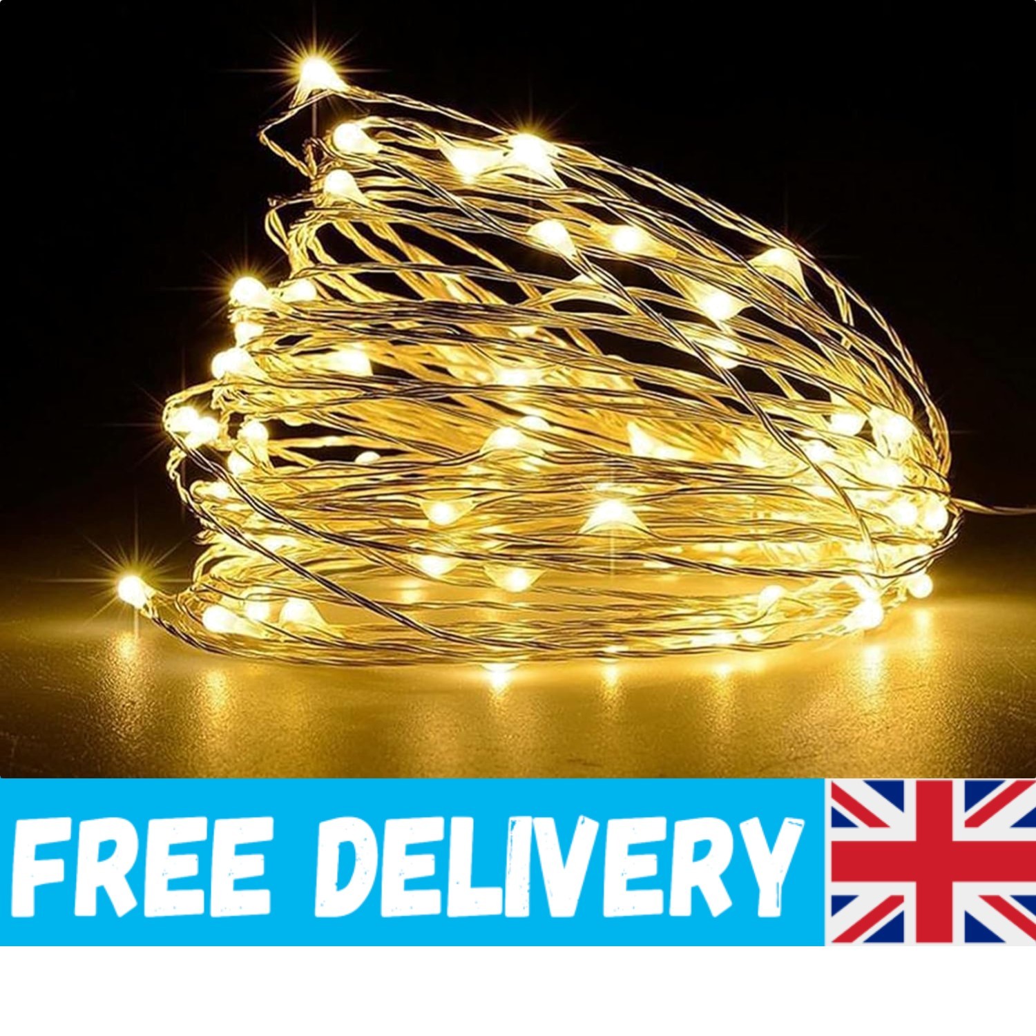 100 Cold White Christmas Xmas LED Lights Outdoor Use Battery Operated 10 Metre