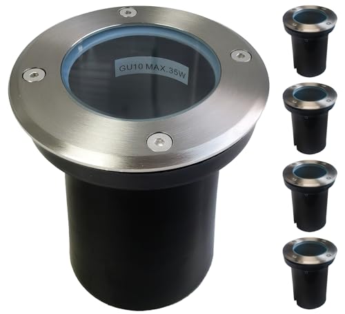 EBION Outdoor Ground Lights,IP67 Waterproof Decking Buried Lights,4 Pack Walk Over Round Outdoor Landscape Light for Pathway, Driveway,Deck,Step,Garden,Max 35W 240V GU10 (Bulbs not Include)