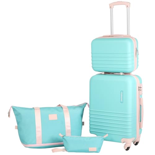 Fergana ABS, 20-Inch Carry-On Suitcase Set – Lightweight Hard Shell Cabin Luggage with Travel Duffel, Vanity Case & Toiletry Bag, Double Spinner Wheels, TSA Lock. (Baby Blue)