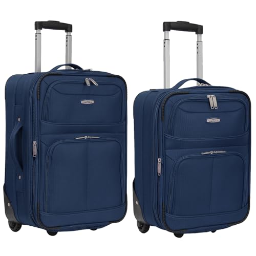 ARIANA® Lightweight Hand Luggage Cabin Size Trolley Suitcase Carry On Travel Bag (Navy, 2 Pcs Set (18" + 21"))